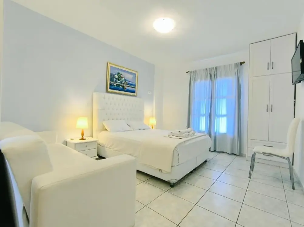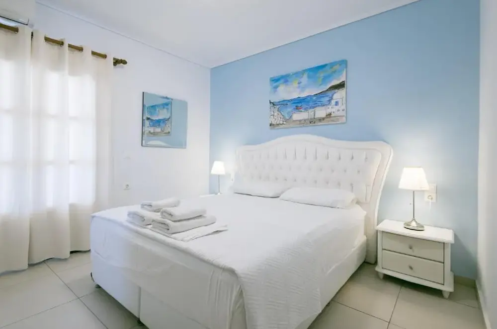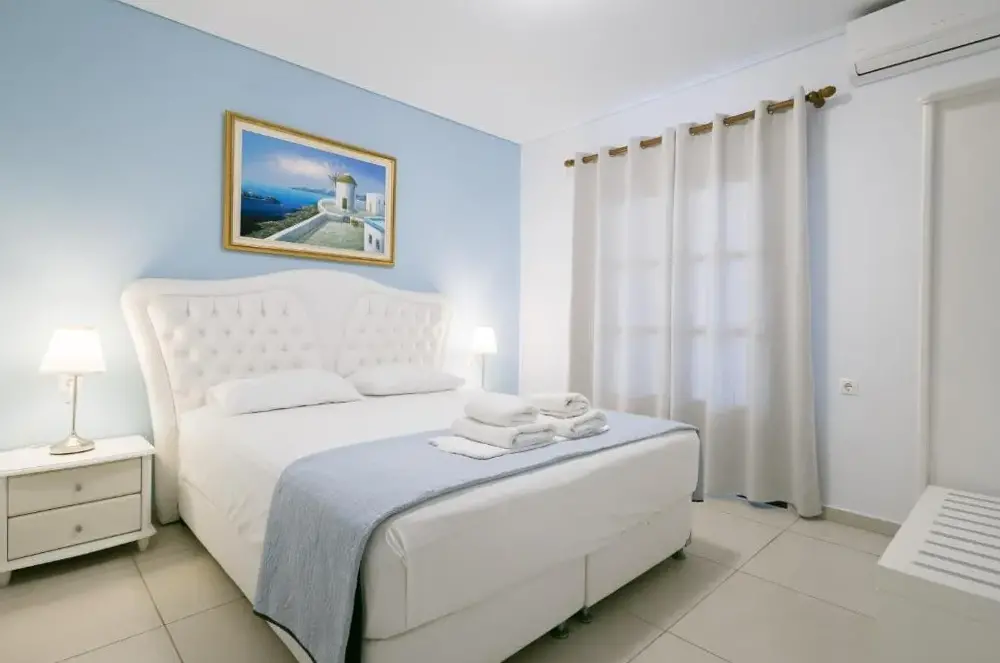 We stayed with Dimitri and his family for 13 days. The best thing was the town of Neo Klima. It is small and quiet. There is one bar, six good taverna's, a bakery, three supermarkets, (not Tesco's but you can get most things you want}. The beaches are a sand/shingle mix and you will need a pair of swimming shoes. The apartment is the best location in the town and you watch the boats being hired and the sailing yachts arriving from your balcony., The beds are comfortable, and we slept very well using the air conditioning when it was very hot. Dimitri and his family go out of there way to make your holiday memorable. We hired a scooter {Dimitri will rent you a car, if your happier on 4 wheels ), and visited lots of other beaches. We especially liked Limnonari where the sunbeds are free if you dine at their taverna. We had a brilliant holiday and highly recommend these apartments.